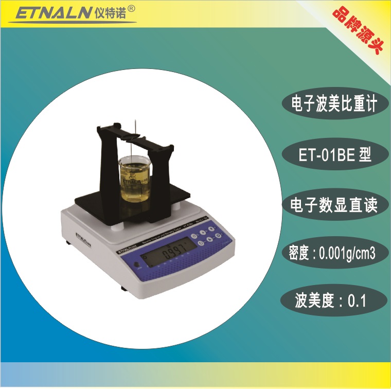 ET-01BE波美度精度為0.1°Bé,波美度測量范圍是0.01~100.00°Bé,密度測量范圍是:0.001—7.800g/cm3;