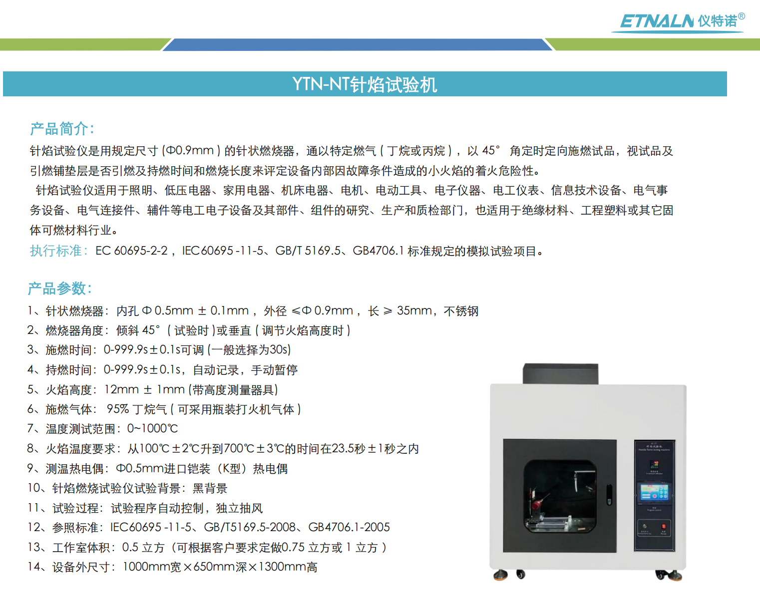 普通針焰測試:火焰施加時間為30秒;