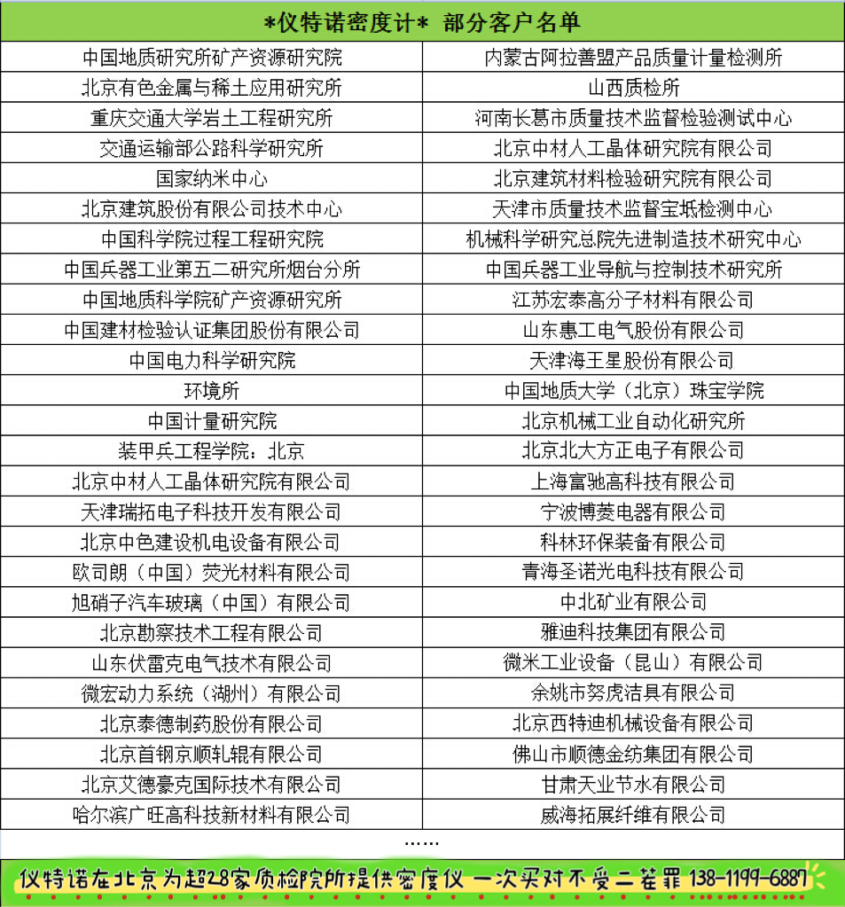 作為為北京超過28家質檢計量院所提供密度儀的廠家,儀特諾熱誠期待與您合作,共同為打造更簡便、高效、節約成本的密度儀器貢獻力量。
