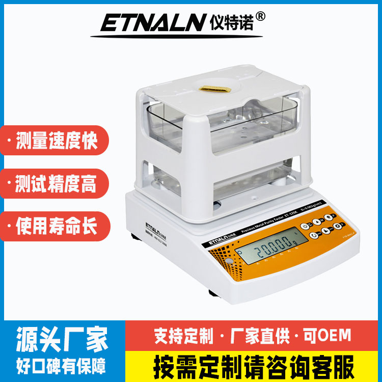 ET-1200K稱重精度0.01g , 最小測(cè)試產(chǎn)品5g ,密度分辨率0.01g/cm3。
