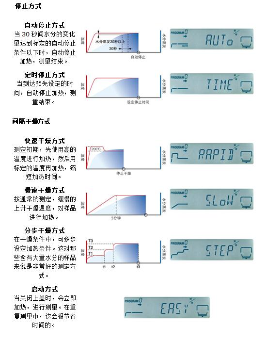 在干燥條件中,可多步設定加熱條件。這對那些含有大量水分的樣品來說是非常好的測定方式
